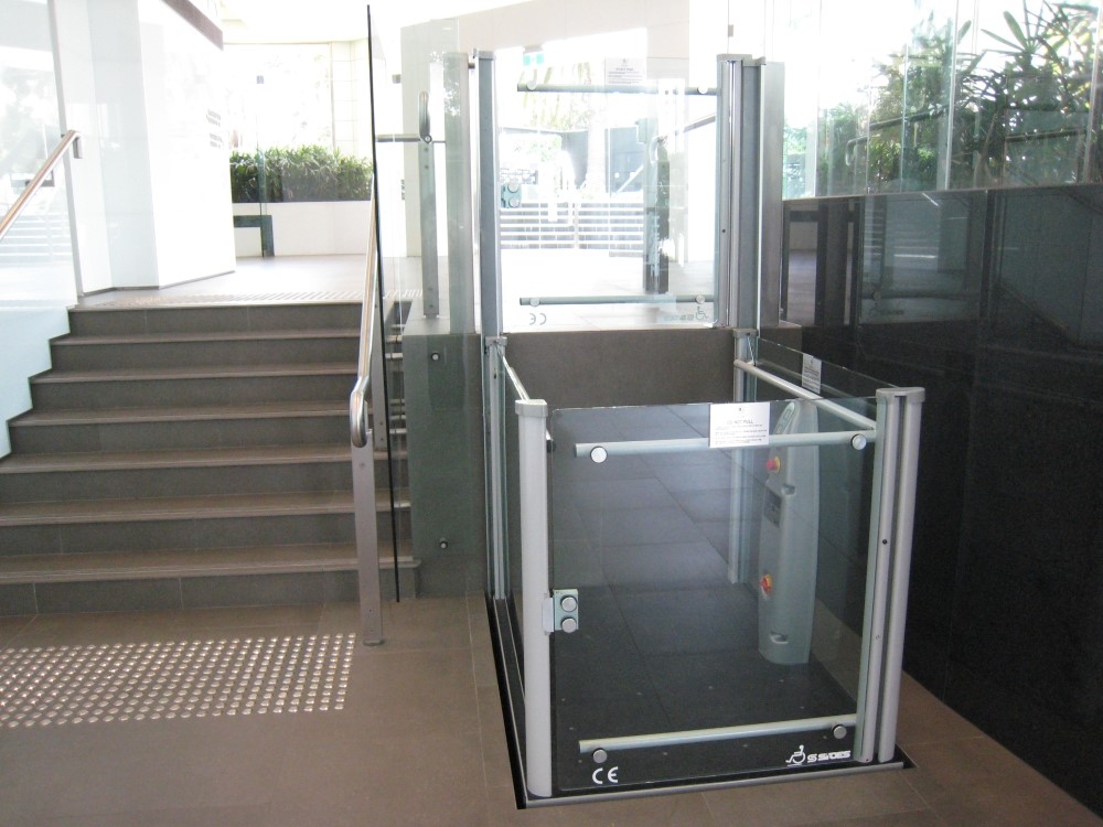 Este aparato representa todo un aval de seguridad y comodidad para aquellas personas que necesiten acceder a superficies elevadas hasta un máximo de 2 metros. Instalable tanto en interiores como en exteriores, el elevador vertical EVP-AQ está equipado con resguardos fijos, tiene puertas de vidrio laminado con los bordes redondeados y dispone de asideros en toda su longitud.