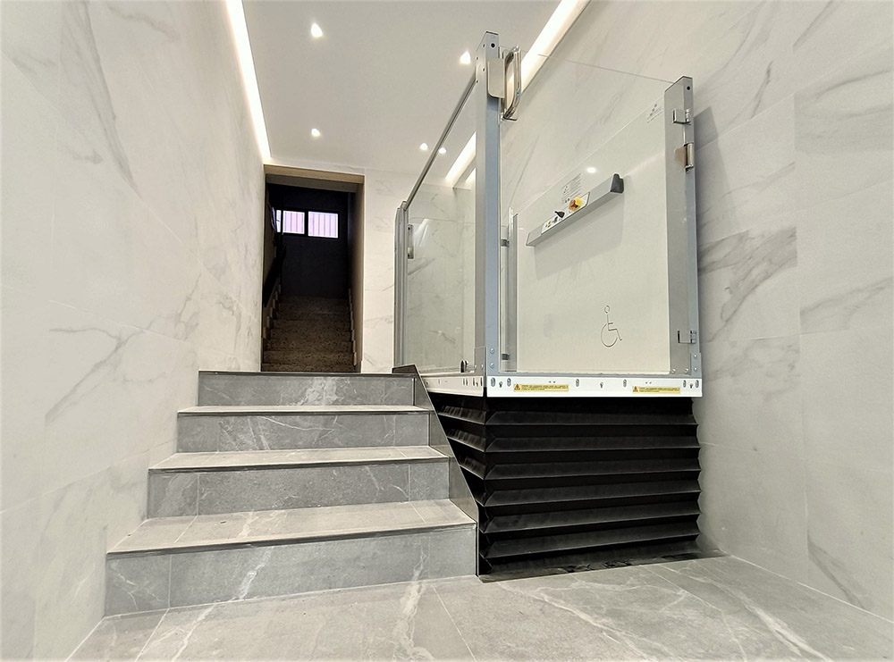 El elevador vertical EVP-X es la solución ideal para salvar desniveles de hasta 1 metro en viviendas, locales comerciales y espacios públicos, especialmente diseñado para personas con movilidad reducida o en silla de ruedas. Con una capacidad de carga de hasta 400 kg, este elevador compacto y robusto cumple con la Directiva de Máquinas 2006/42/CE y los criterios del Código Técnico de Edificación (DB-SUA/2). Incorpora avanzados sistemas de seguridad como cerraduras eléctricas, fuelle de protección perimetral, sistema de rescate por batería, y pulsadores de presión permanente. Su diseño ergonómico, el funcionamiento mediante autómata programable y su instalación sencilla lo convierten en una opción eficiente y fiable para recorridos cortos.
